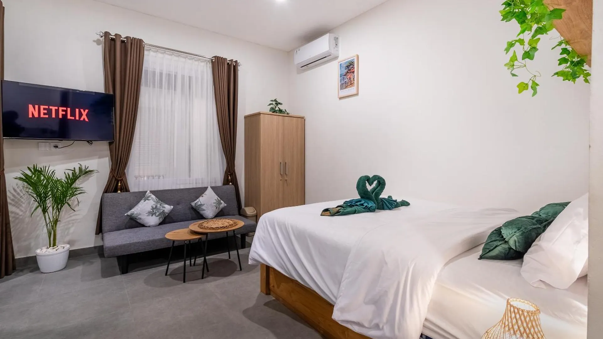 Das Hotel verfügt über 6 Zimmer mit einem Balkon und einem Essbereich. Sie verfügen über einen Flachbildfernseher mit Satellitenkanälen sowie eine Klimaanlage. In den Zimmern gibt es ebenfalls ein Bidet, eine getrennte Toilette und eine Dusche.